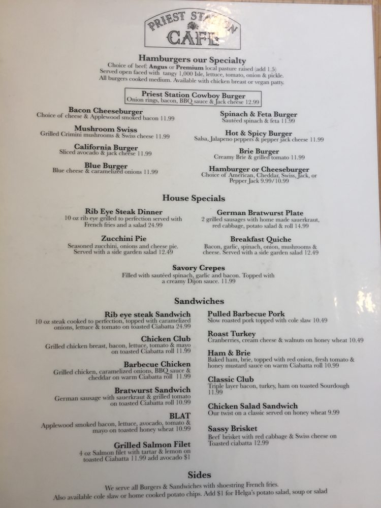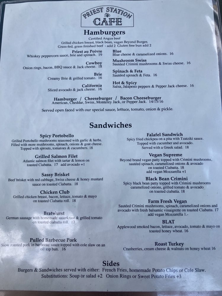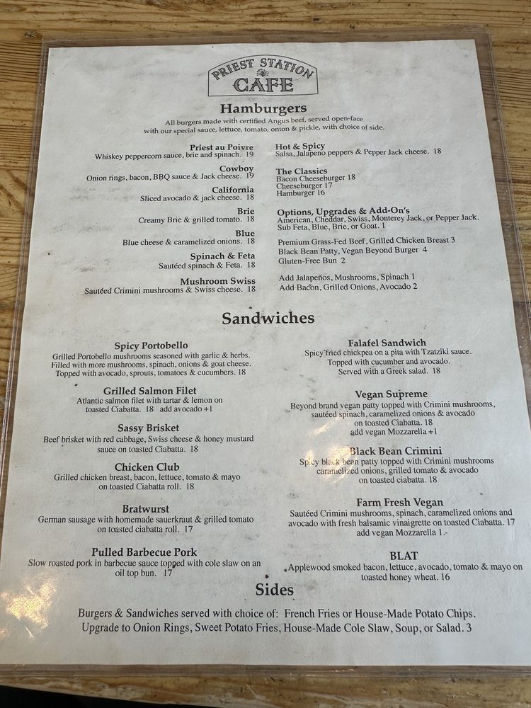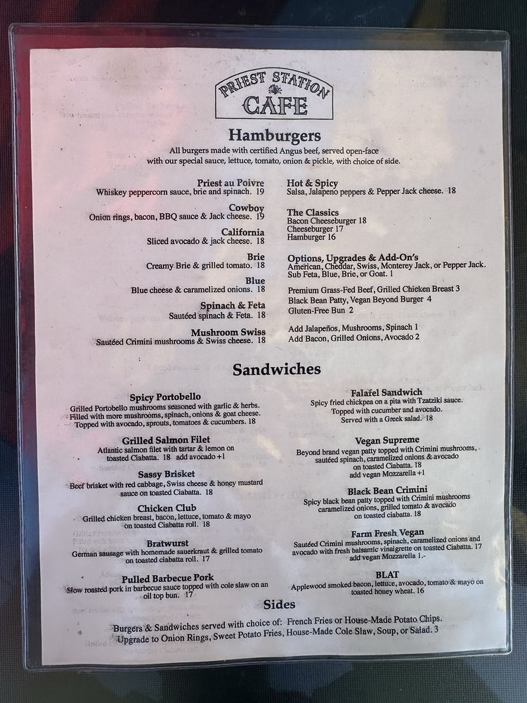 Priest Station Cafe Menu (2025 Update)
